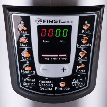 Pressure and slow cooker 6 liters and 1000W. The cooking pot has a non-stick coating, it is removable for easy washing and has measuring steps so you can always be sure of the food’s success. You can program the cooker even 24 hours in advance, and it will prepare the food at the pre-set time. It can also keep your food warm for up to 24 hours at a temperature of 60 – 80ο C. It has 8 different programs for pulses, meat, cake, heating, rice, pasta, suma and making broth. Setting the programs is easy with the LED screen. The temperature is precisely and independently regulated thanks to the integrated thermostat. The container and lid are easily removed and disassembled for perfect and easy cleaning. The kettle is completely free of BPA chemicals.