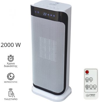 Αερόθερμο ισχύος 2000W με κεραμικό θερμαντικό σώμα και 2 ρυθμίσεις έντασης, θερμοστάτη και χρονοδιακόπτη. Διαθέτει θερμοστάτη ώστε να ορίζετε εύκολα τη θερμοκρασία που θέλετε και όταν αυτή επιτευχθεί το αερόθερμο απενεργοποιείται για εξοικονόμηση ενέργειας. Διαθέτει οθόνη LED, λειτουργία ταλάντευσης για ομοιόμορφη κατανομή θερμοκρασίας στο χώρο και ελέγχεται πλήρως από το τηλεχειριστήριο.